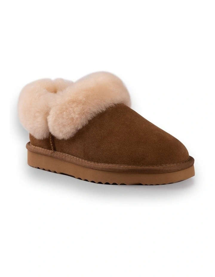 - This traditional Ankle slipper for built comfort and support. The added sheepskin collar allows for that extra warmth, still providing a stylish look.