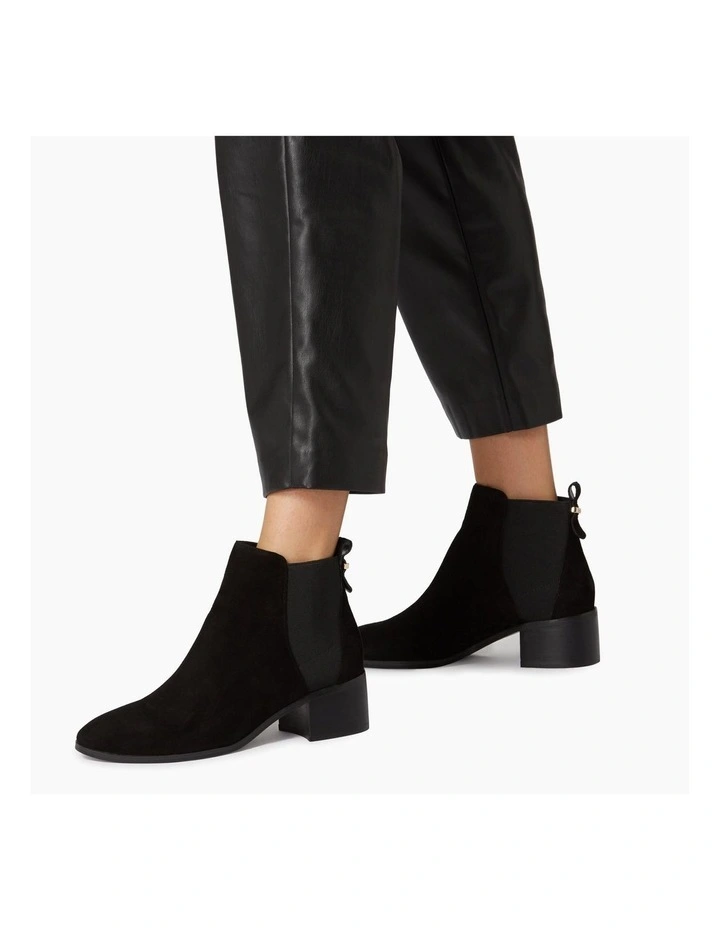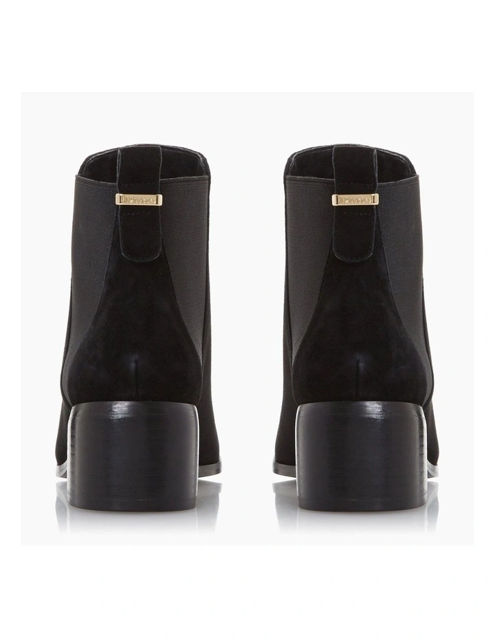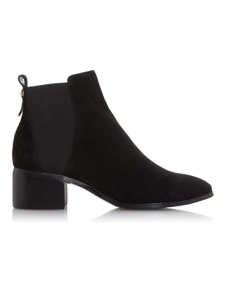 Invest in sophisticated everyday footwear like the Ozzi boot from Dune. Fitted with an elasticated panel for ease and added comfort. It rests on a sleek and comfy low block heel.