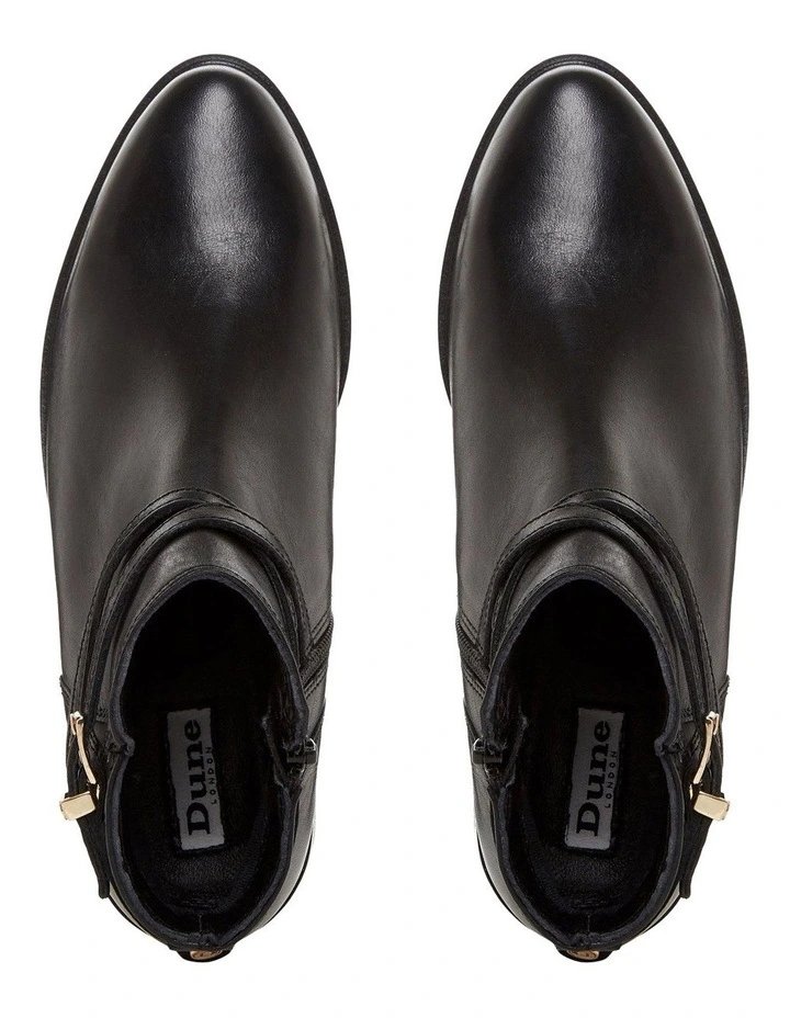 Step out in style with the chic Peper boot from Dune. It’s designed with a zip and gold-tone buckle fastening. It rests on a comfy low block heel.