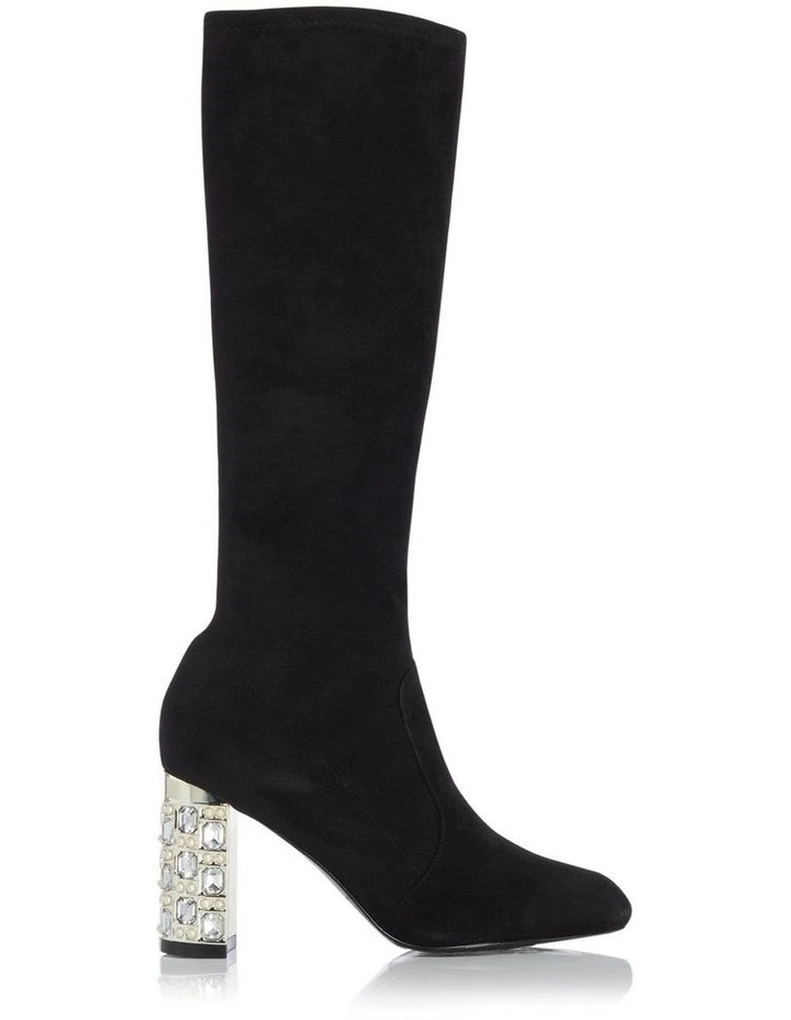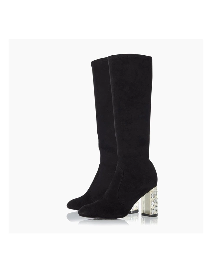 Add a touch of glam to your shoe collection with the Stargazing boots. Resting on a block heel with crystal embellishment. Shaped with a round toe for a classic finish.