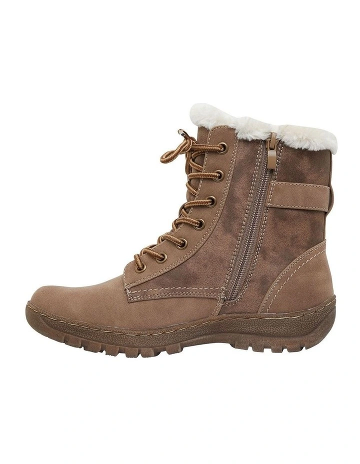 ELF is designed with our cold Winter days in mind! This ankle boot features faux-fur inner lining, lace up detailing for a custom fit and side buckle detailing. With a non-slip grip sole, ELF does not leave you compromising style for comfort!