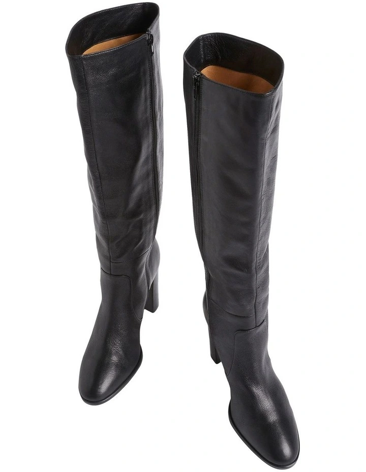 The Gretchen Leather Boot is a must have for your wardrobe. Made from 100% leather upper and lining, it features a classic long boot design, zip and heel, and comes in a choice of black or tan colourways. Style with our Cinnamon Floral Shirred Dress and Carla Leather Hobo. Heel height: 8.5cm.