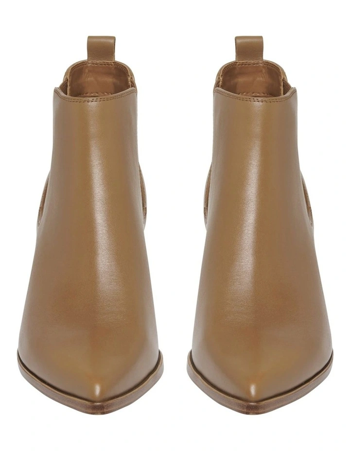The classic and minimalistic design of the Savita Boot will effortlessly look chic and classic with almost any outfit. The sleek pointed toe front, sturdy low block heel and pull on tab at the back of the ankle means for a comfortable yet fashionable wear. The small stitching detail around the elasticated sides and boot opening adds an interesting design feature to this otherwise simple and minimal boot aesthetic.