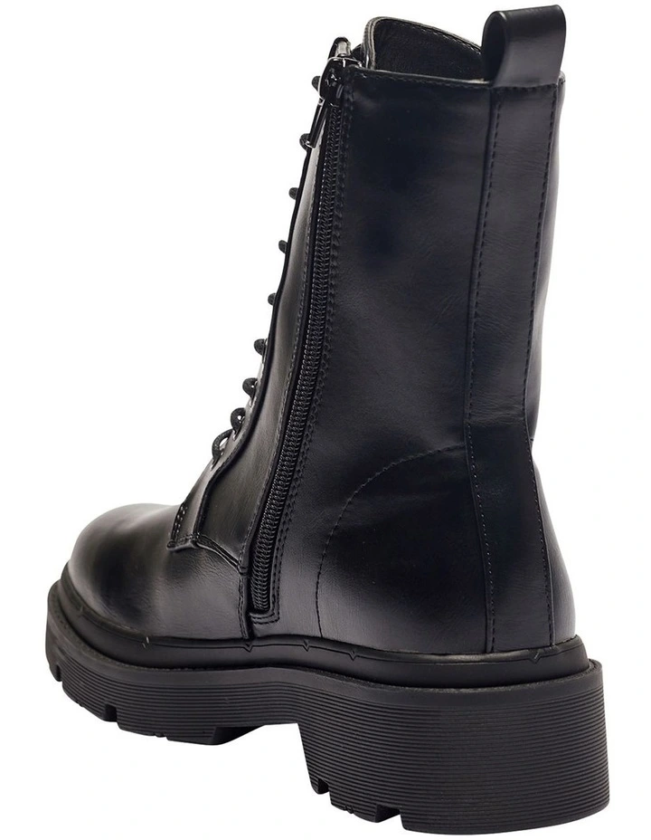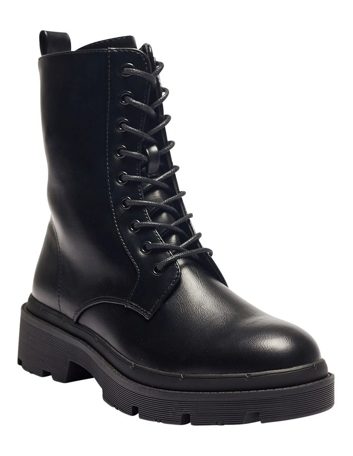 HAMMOND draws inspiration from military and biker influences to craft this hi-top ankle boot. They’re made with a practical synthetic upper to a rounded toe with a lace up vamp for a comforted fit, fastened with an inner zip and set atop a chunky stacked sole. Make these your firm everyday favourite to anchor countless cold weather ensembles.Β