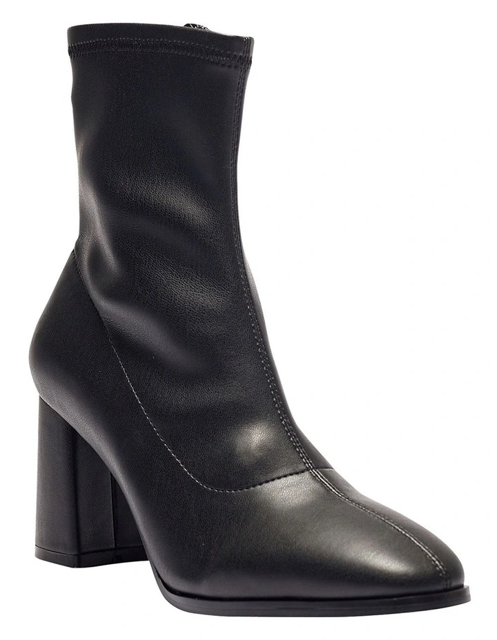 IMPULSE conveys a modern yet sophisticated mood highlighted with this sock-like silhouette. They’re crafted with a soft synthetic upper to a squared rounded toe elevating the simple boot design, fastened with an inner zip then set on an angular block heel. Slip them on with neutral separates to complete a minimalist look.