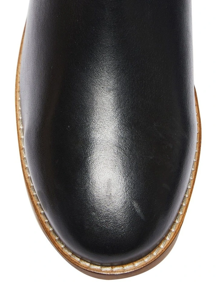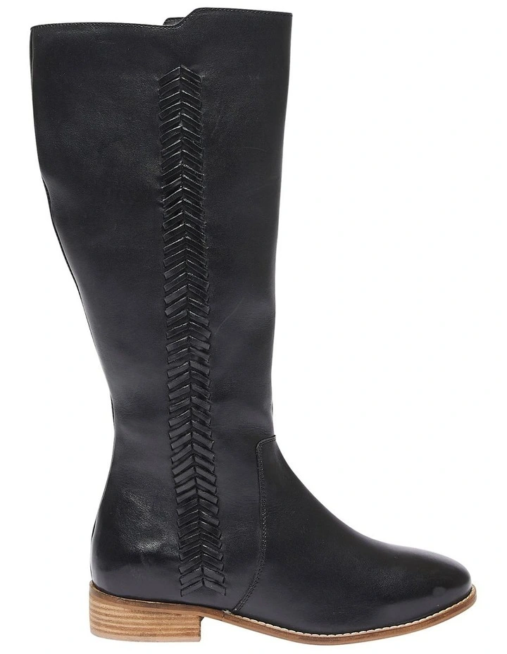 LEIGHTON is modelled off a traditional riding boot with a boho inspiration. The knee high style is crafted with a leather upper that features a chevron outerstitch detailing on the outer vamp, fastened with an inner zip and then finished on a comfortable low heel. Show off the detailing by teaming this under midi skirts and knitted dresses.Β