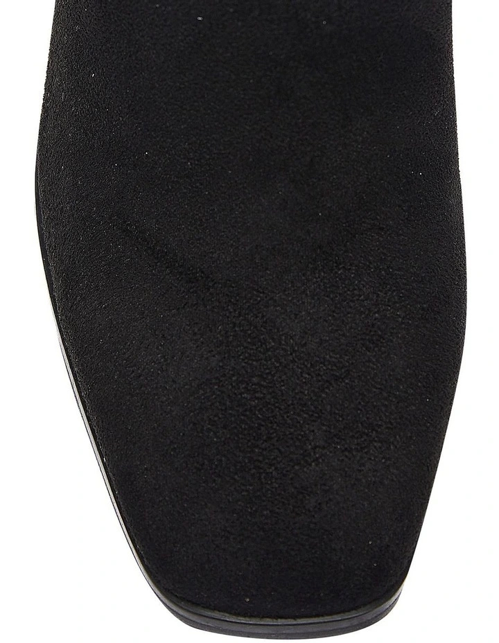Inspired by the clean lines of traditional riding boots, MACBETH is refocused with a modern twist of a thick block heel. They’re crafted using a synthetic upper to a squared toe profile, featuring an overstitch detailing and fastened with an inner zip. Style the long boot as part of a chic dinner edit with a high neck blouse and statement earrings.Β