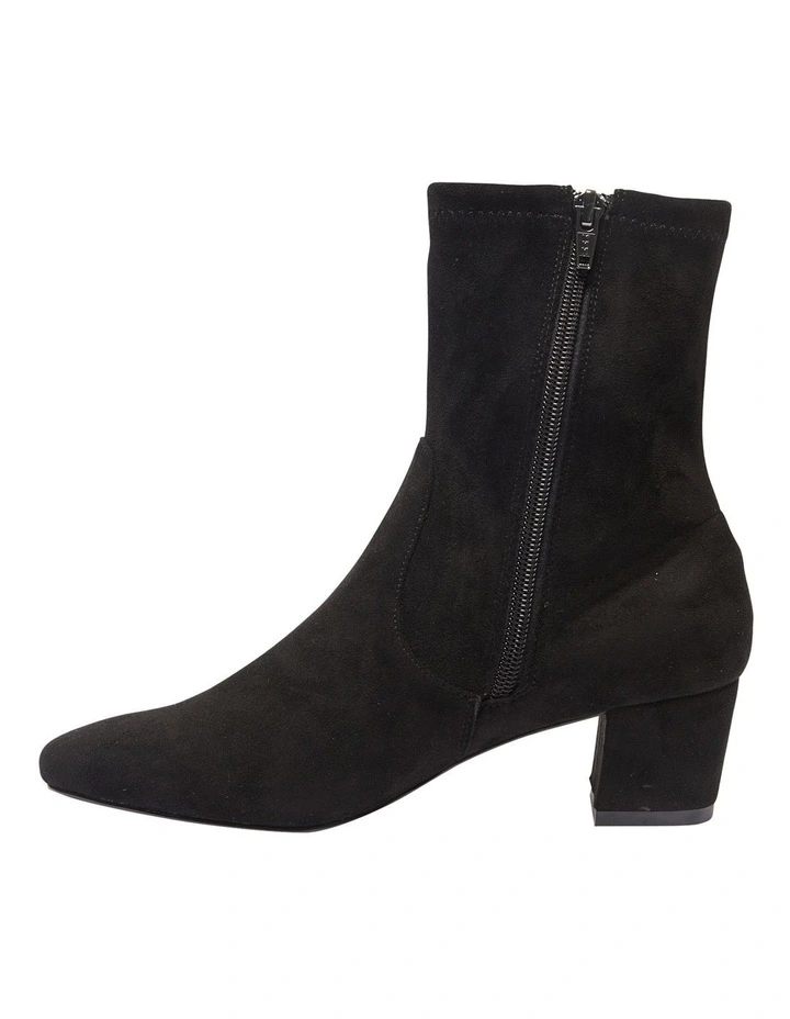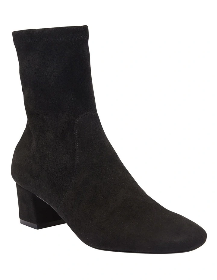 Your new hero piece to your winter wardrobe, MADDOX is an effortless option for office runs to weekend dressing. The sock-like style is made with a sumptuously stretch suede and are shaped to a squared round toe, then set on a comfortable mid stacked heel. Balance the minimal aesthetic by teaming them with cuffed wide leg jeans.Β