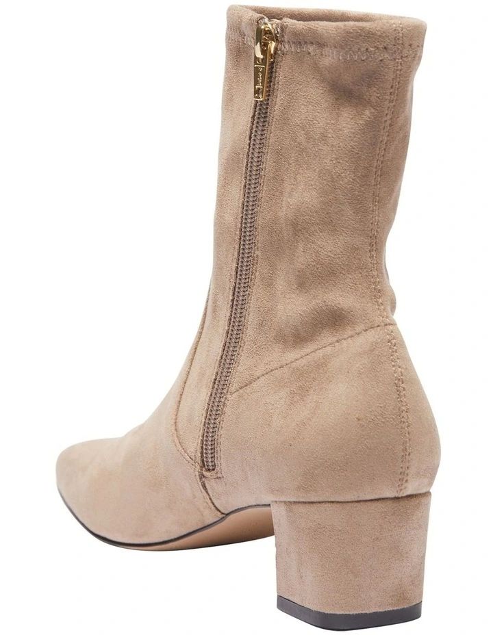 Your new hero piece to your winter wardrobe, MADDOX is an effortless option for office runs to weekend dressing. The sock-like style is made with a sumptuously stretch suede and are shaped to a squared round toe, then set on a comfortable mid stacked heel. Balance the minimal aesthetic by teaming them with cuffed wide leg jeans.ย