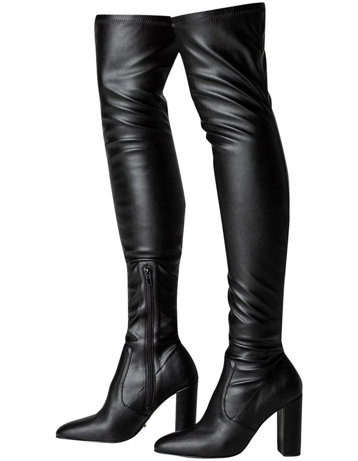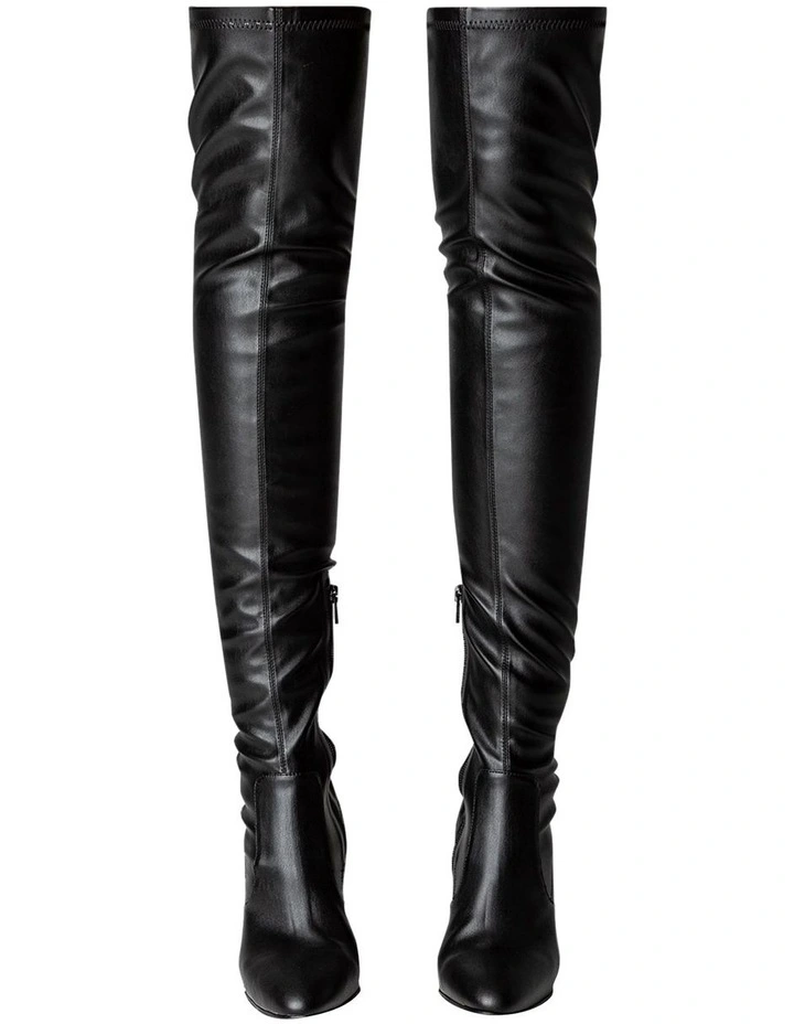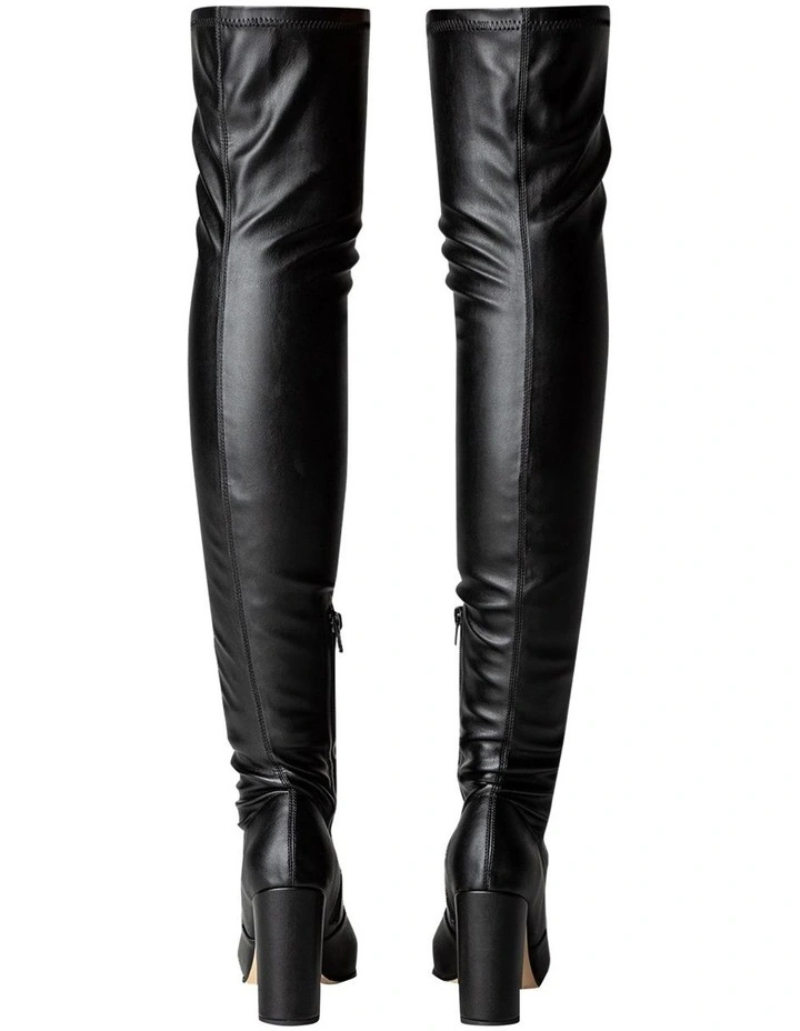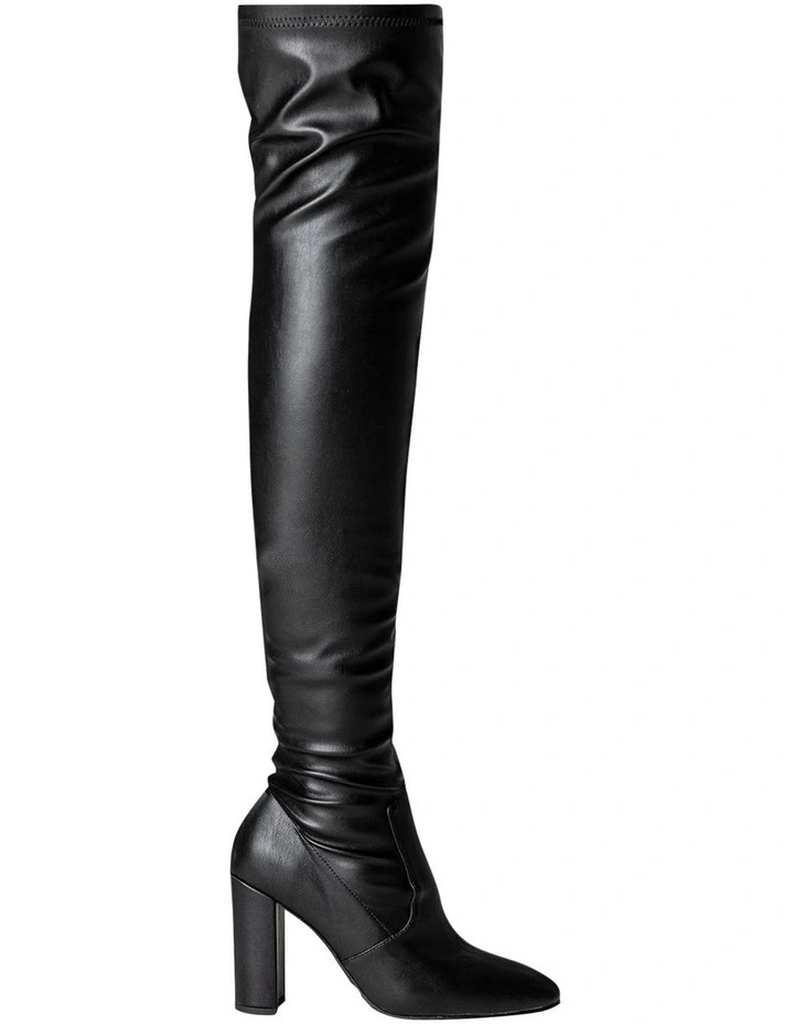 Cue compliments with the new Bloom black over-the-knee boots. This thigh-high moment showcases a leather-like finish, soft almond toe and block heel to make these winter boots in a league of their own.
