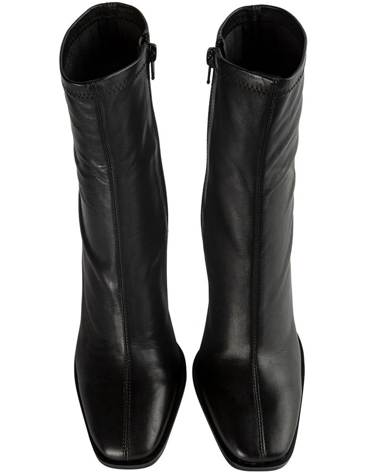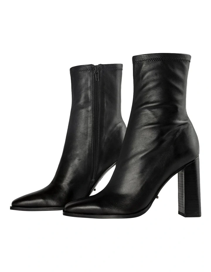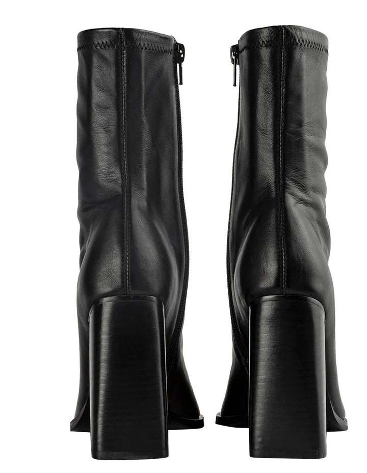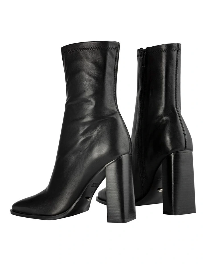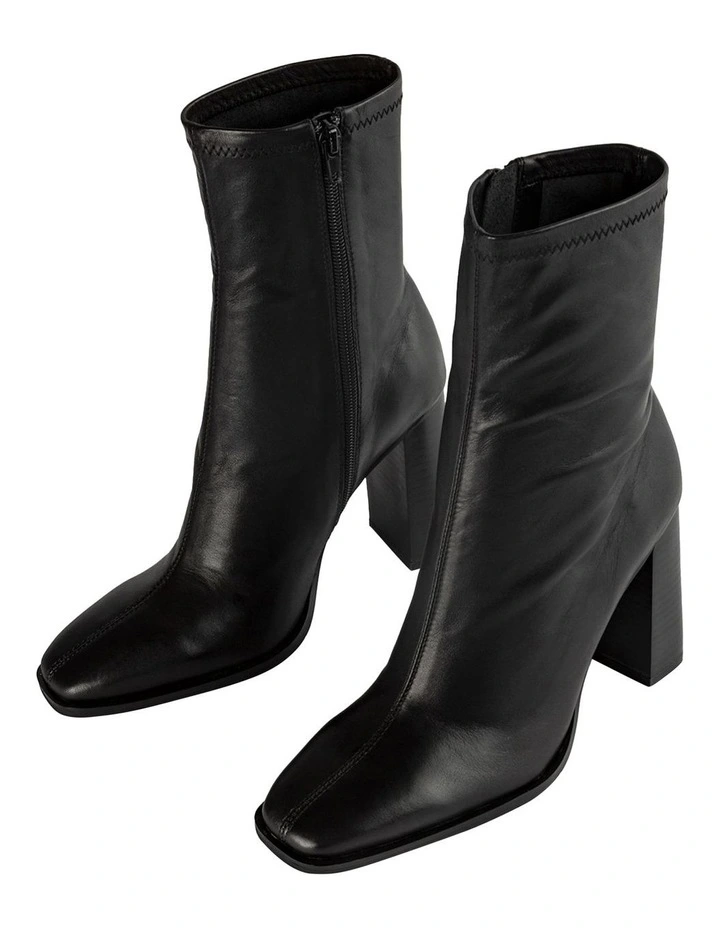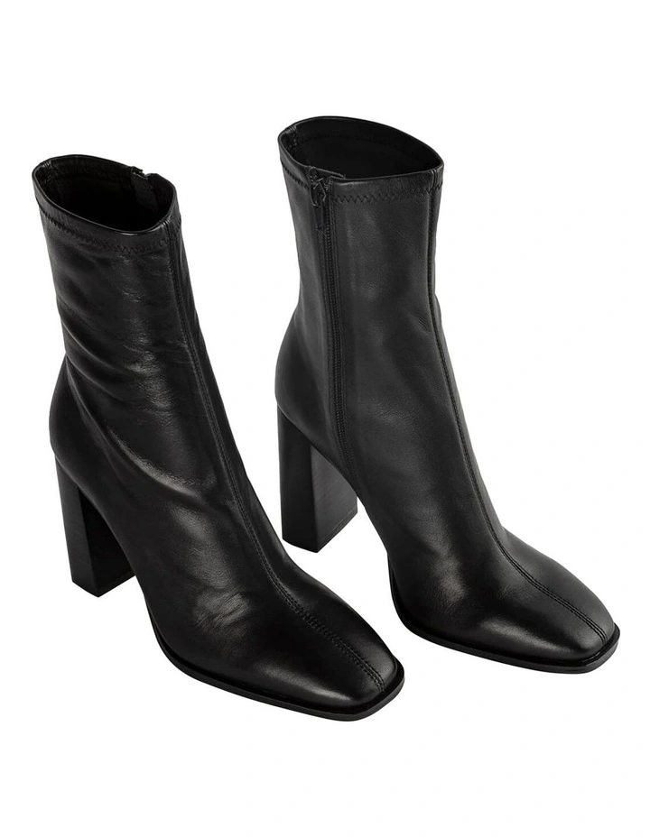 Stand-out from the rest this winter with our Ines heeled ankle boot. Back and better than ever in a brand new black leather, this style features a tall block heel with a slightly squared toe, a genuine leather upper, lining and cushioned sole.