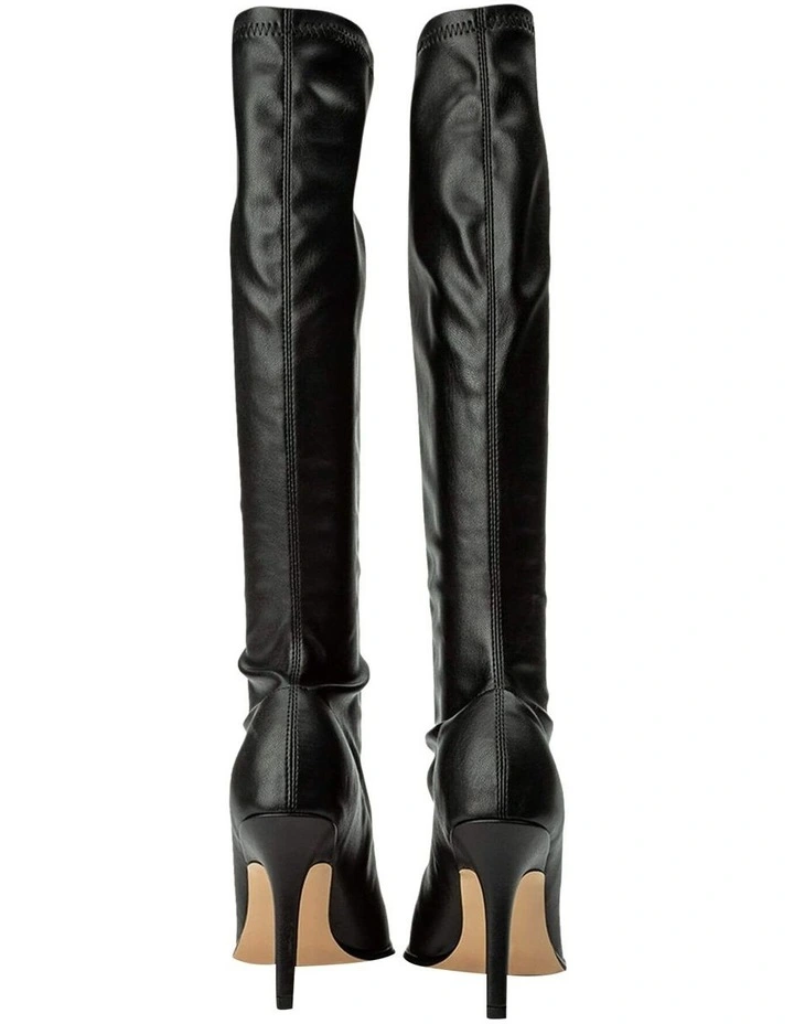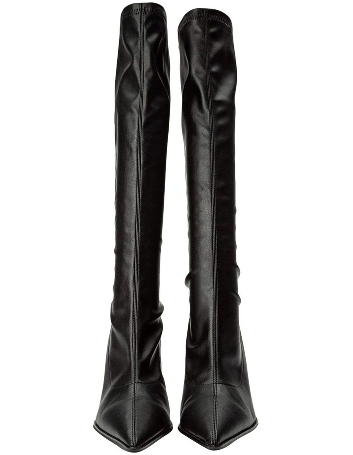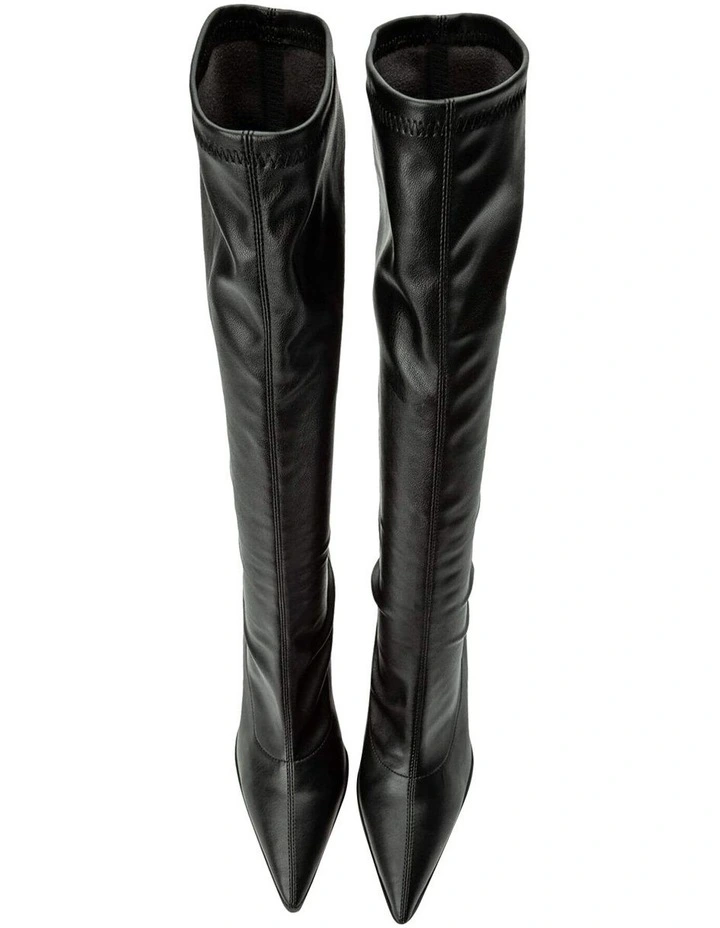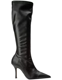 It’s meant to be with the new Knight knee-high black boots. Showcasing a stiletto heel, pointed toe and fitted calf design, these boots are designed to feel made just for you, mimicking a second skin.