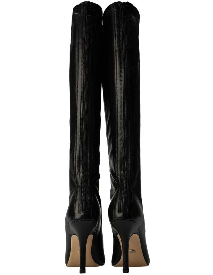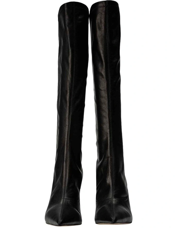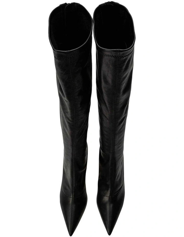 The ultimate slouch leather boot is here. Introducing Kortez the versatile black knee-high boot, showcasing an elongated leather upper and chic pointed toe, let this elevate your winter wardrobe.