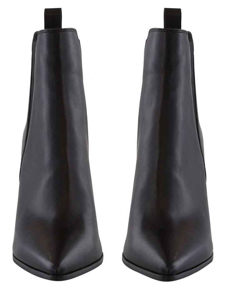 Boast new season style in the Leigh ankle boot. A classic ankle boot showcasing a sleek pointed toe, side stretch gussets for added comfort and a sturdy 10.3cm block heel. Pair with jeans or a midi skirt for a well-rounded look.