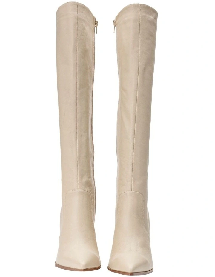 Warm up your wardrobe with these delicious new tones of the ever classic Lucille knee-high boot. With a chic leather upper and elegant pointed toe, the Vanilla leather makes these the ultimate tran-seasonal boot, ready for every occasion.