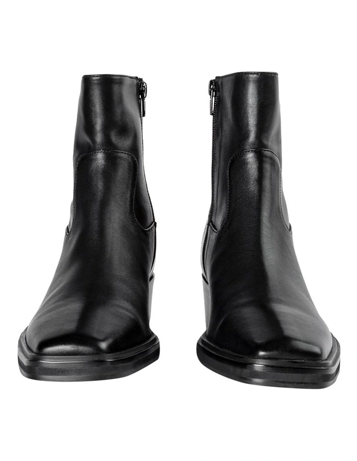 For a touch of the wild west look no further that our Mercury ankle boots. Featuring a bold squared toe-shape, this modern western boot also features an inner zip to easily slip-on-and-go, an exposed sole and a short wood-stack heel.