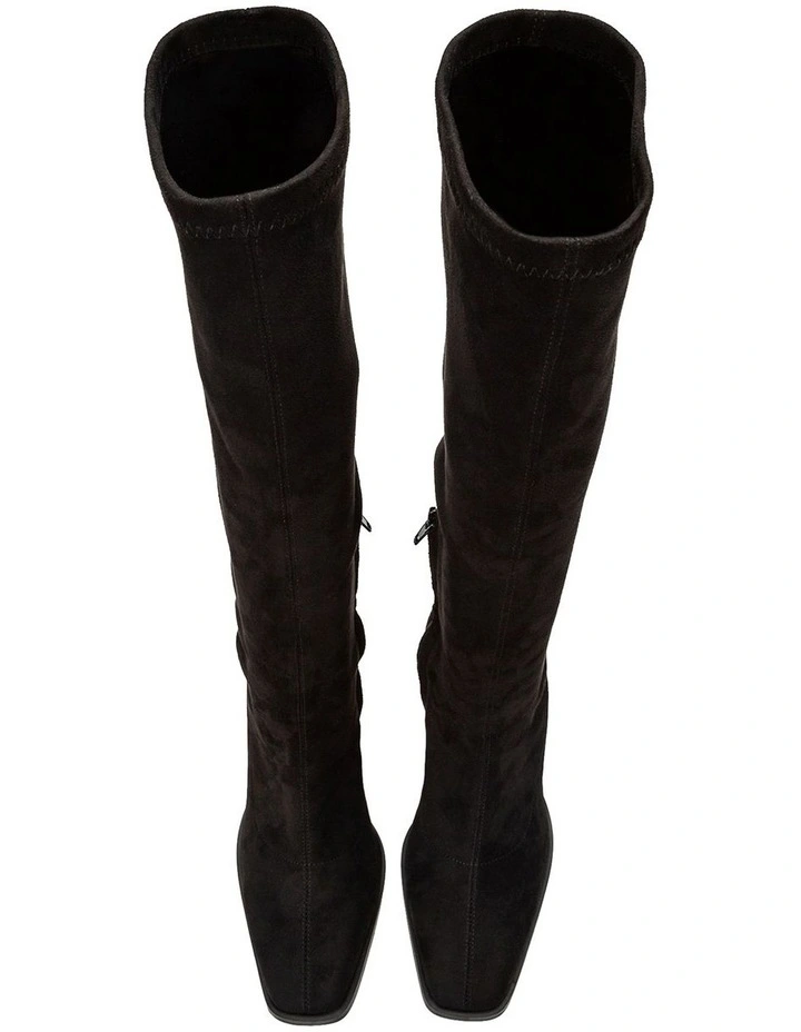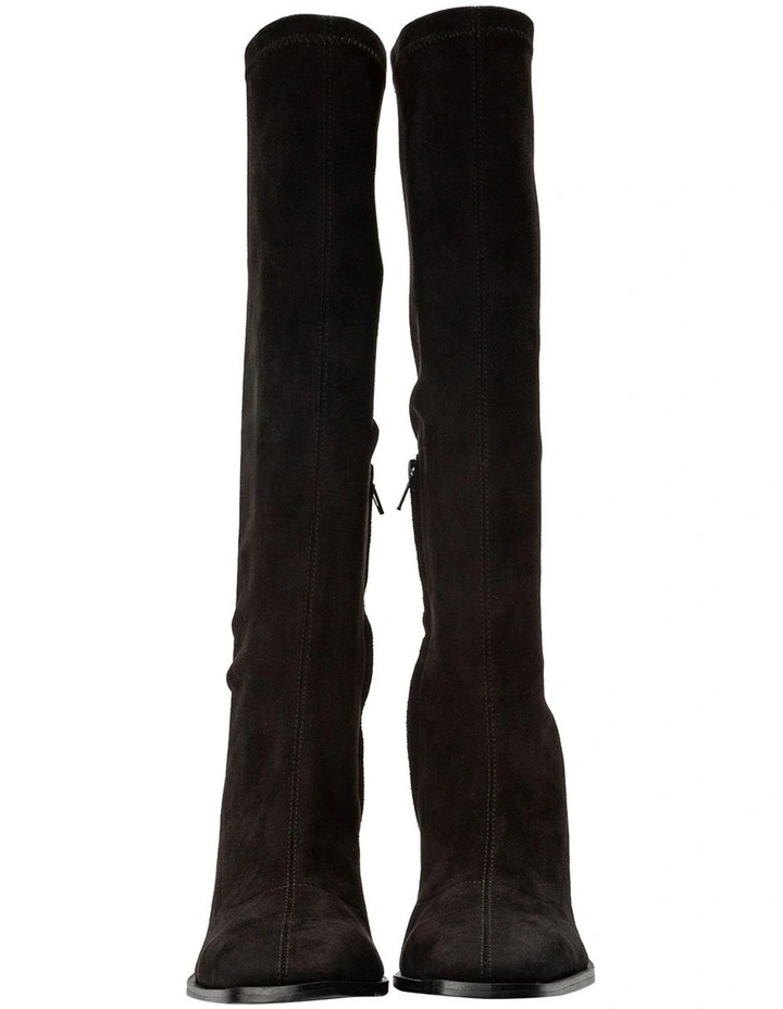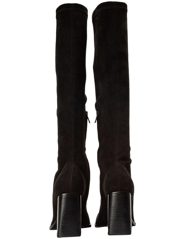 Rise to the occasion with the our chic new addition Renae. A classic black knee high boot in a suede-like finish, this style is sophisticated and effortless. Donning a block heel and sleek silhouette, she is simple yet effective.
