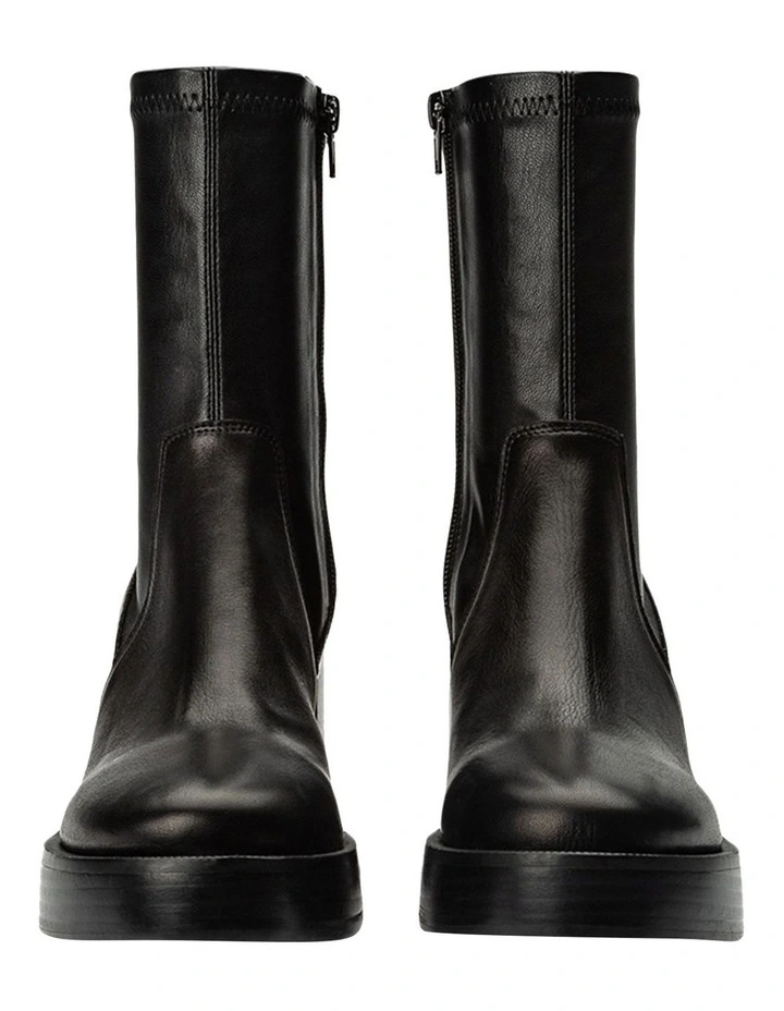 Make way for a 90’s inspired comeback. The Tiana stretch platform boot is set to bring back your 90’s shoes nostalgia. This pull on stretch ankle boot features a soft stretch leather upper, a chunky platform sole and is best paired with a mini skirt and top for the ultimate throw-back.