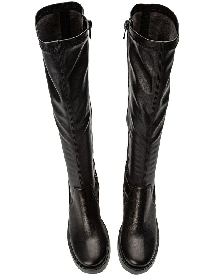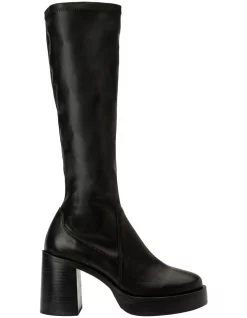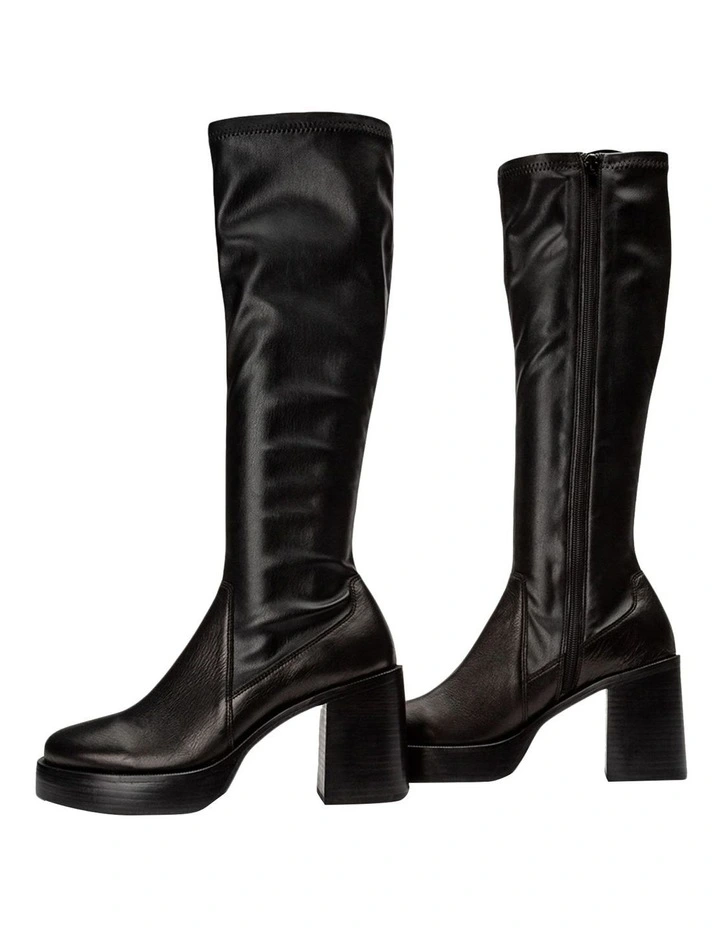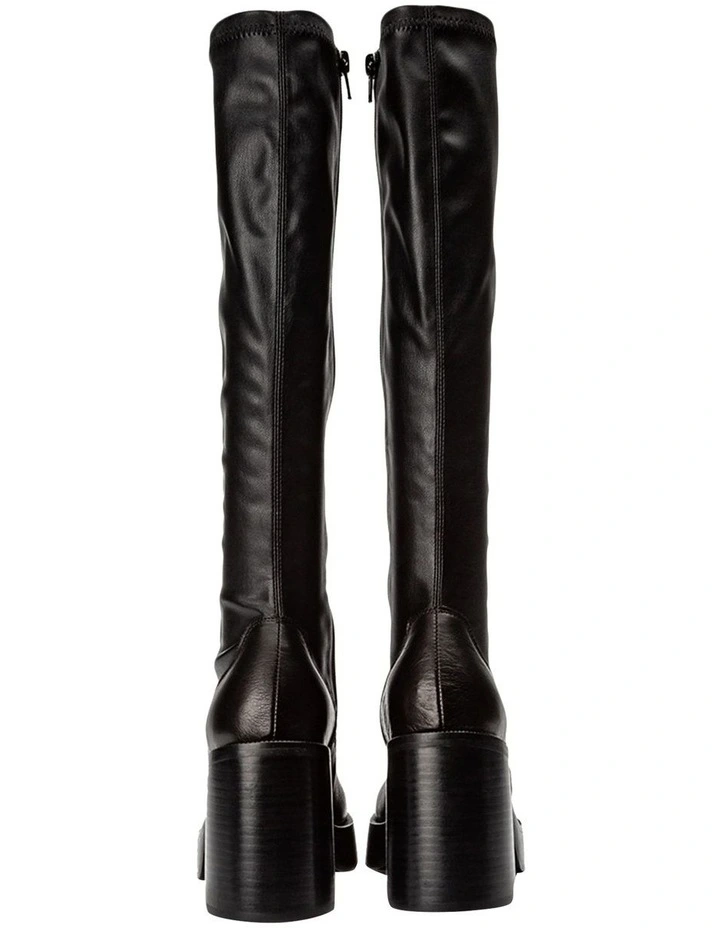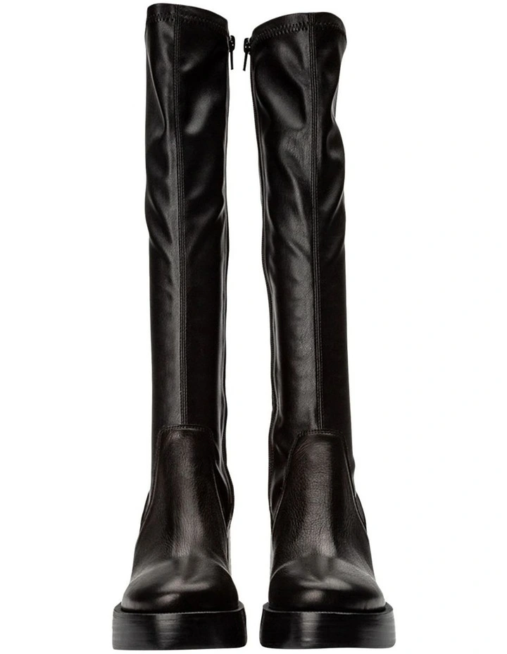 Sometimes a chunky knee high boot is all you need. Our Tibby black platform boot is just that – showcasing a fitted black stretch upper with a chunky platform sole, this style will bring back those 90’s shoe inspired vibes and the demand the attention it deserves.